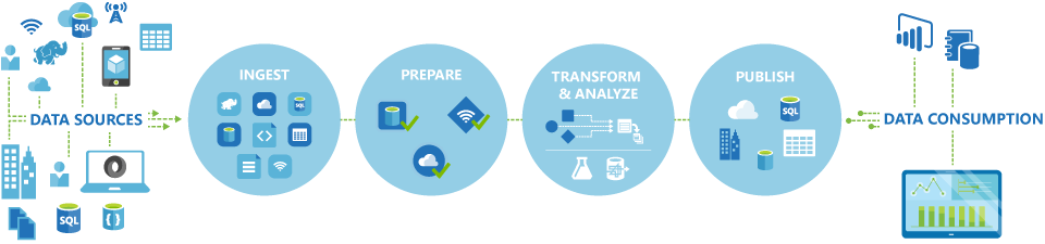 Publish: After refining the data and converting it into consumable form, publish it to cloud stores like Azure Data Lake, Azure Datawarehouse, and Azure Cosmos DB, whichever analytics engine your business users can point from to their BI apps.